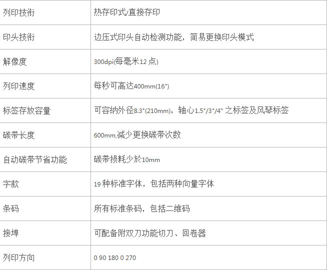 最强劲的碳带节省功能;独特打印头自动检查功能;多种配件可供选择;