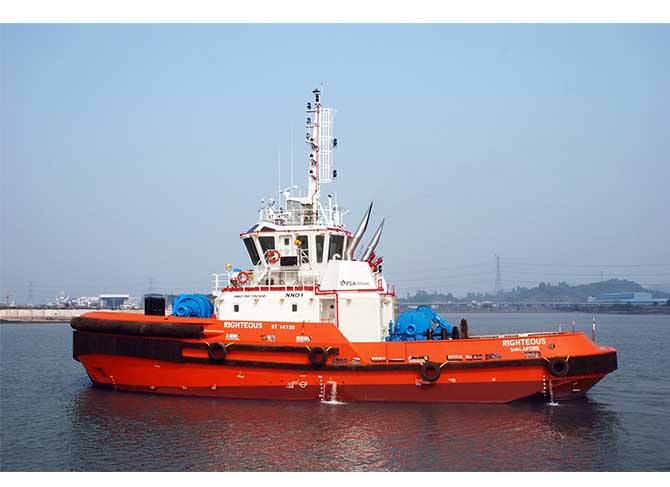 10月10日,粤新海工32米的全回转拖轮AL MONIR正式交付。