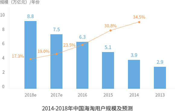 跨境电商既是电子商务的组成部分,也是对外贸易的重要形式。在“一带一路战略的大背景下,跨境电商的意义与作用更加凸显出来。据有关部门统计数据显示,我国跨境电商交易额增长, 一直保持在30%左右。 随着消费升级和海淘电商平台的普及,我国跨境电商交易规模继续扩大。 我国跨境电商交易规模达到6.3万亿元,仅海淘用户规模就已达到4100万人次。 促进跨境电子商务健康快速发展,用“互联网+外贸”实现优进优出,有利于扩大消费、推动开放型经济发展升级、打造新的经济增长点。